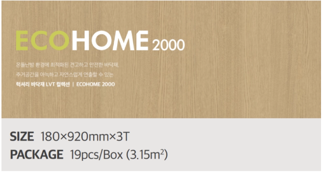 | 에코홈2000 | 3.0mm | 0.15mm | 베이직 우드, 실속형 디자인 | 주거공간 |