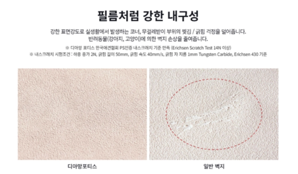 디아망은 클래식한 고급 실크벽지를 원하는 이들에게 적합하며, 부드러운 광택과 전통적인 패턴이 특징이고, 디아망포티스는 현대적이고 강렬한 인테리어를 추구하는 이들에게 최적화되어 있으며, 내구성과 실제 자재를 연상케 하는 텍스처가 핵심입니다.