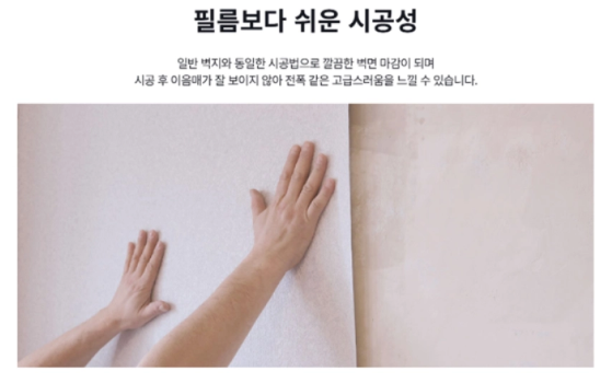 중량감 있는 소재로 벽면에 단단히 밀착되며, 시공 후 이음매가 잘 보이지 않아 전폭 같은 고급스러움을 느낄 수 있습니다. 장기 사용 시에도 들뜸이나 갈라짐이 적습니다.