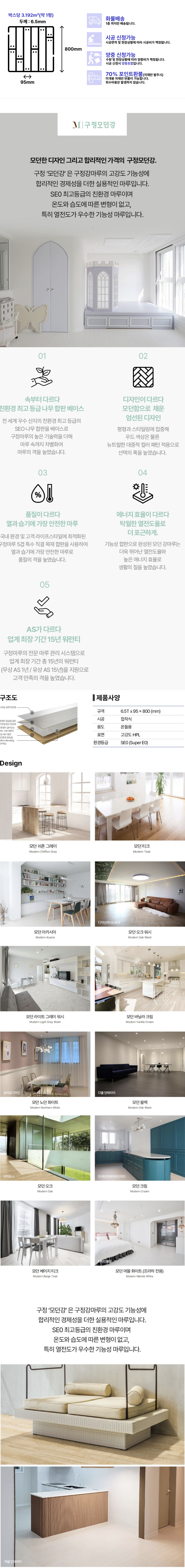 구정마루의 강마루, 모던강 티크 입니다. 판매 가격 단위는 박스이며, 6.5(T)*95(W)*800(L) (박스당 3.192㎡)입니다. 일반 소비자가 기준 73,920원에 판매하고 있으며, 사업자 단가는 앱 설치 및 로그인 시 확인 가능합니다.