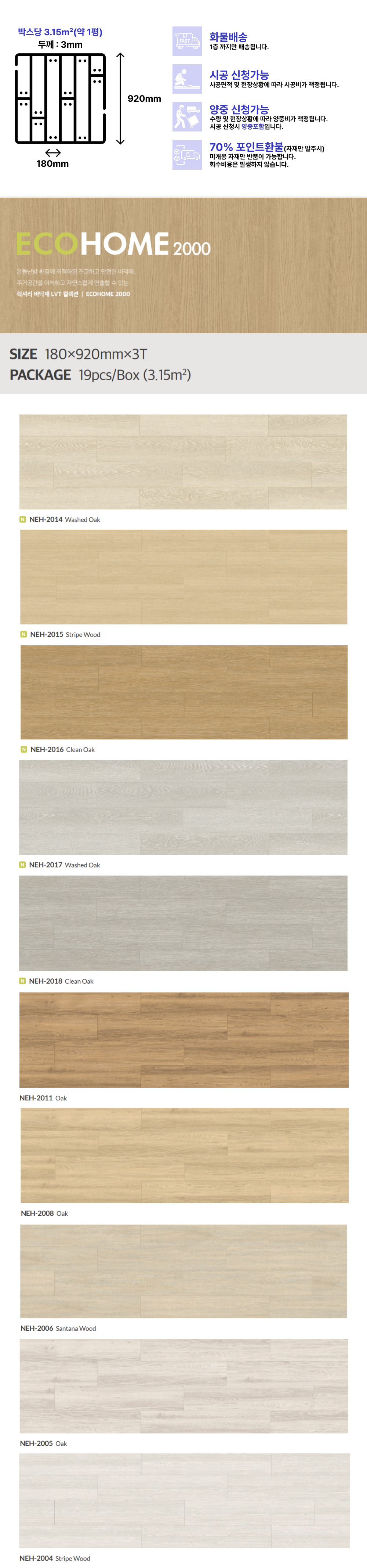 녹수 데코타일 에코홈2000라인, StripeWood NEH-2004 입니다. 판매 가격 단위는 박스이며, 3.0(T)*180(W)*920(L) (박스당 3.15㎡)입니다. 일반 소비자가 기준 41580원에 판매하고 있으며, 사업자 단가는 앱 설치 및 로그인 시 확인 가능합니다.