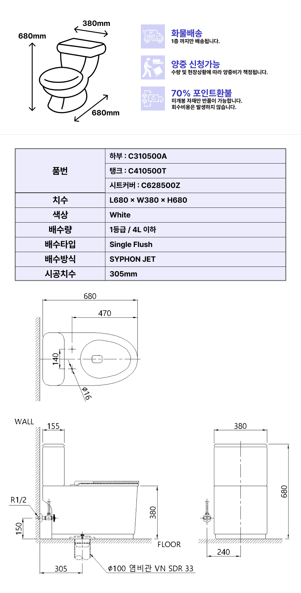 아메리칸스탠다드 브랜드의 투피스양변기 리니어 투피스양변기(초절수) 입니다. 사이즈는 680(L)*380(W)*680(H)입니다. 일반 소비자가 기준 309100원에 판매하고 있으며, 사업자 단가는 앱 설치 및 로그인 시 확인 가능합니다.