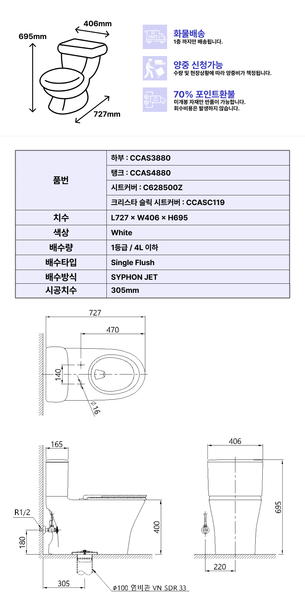 아메리칸스탠다드 브랜드의 투피스양변기 시그니처 투피스양변기(초절수) 입니다. 사이즈는 727(L)*406(W)*695(H)입니다. 일반 소비자가 기준 314600원에 판매하고 있으며, 사업자 단가는 앱 설치 및 로그인 시 확인 가능합니다.
