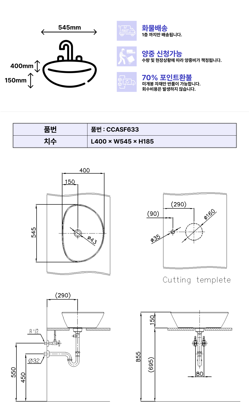 아메리칸스탠다드 브랜드의 탑세면대 네오모던 탑볼세면기 입니다. 사이즈는 400(L)*545(W)*185(H)입니다. 일반 소비자가 기준 107910원에 판매하고 있으며, 사업자 단가는 앱 설치 및 로그인 시 확인 가능합니다.