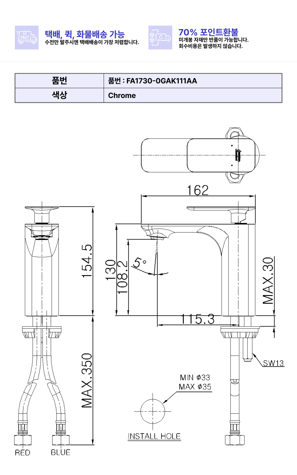 아메리칸스탠다드 브랜드의 세면수전 레이크S 1H세면수전 입니다. 일반 소비자가 기준 129800원에 판매하고 있으며, 사업자 단가는 앱 설치 및 로그인 시 확인 가능합니다.