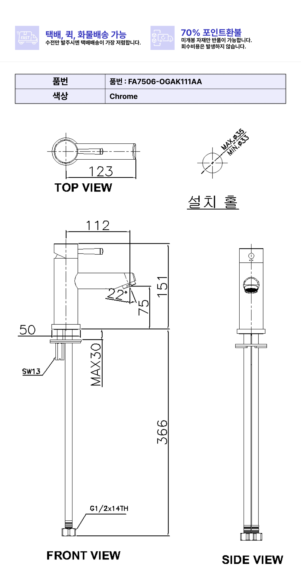 아메리칸스탠다드 브랜드의 세면수전 미니말 1H세면수전 입니다. 일반 소비자가 기준 119900원에 판매하고 있으며, 사업자 단가는 앱 설치 및 로그인 시 확인 가능합니다.