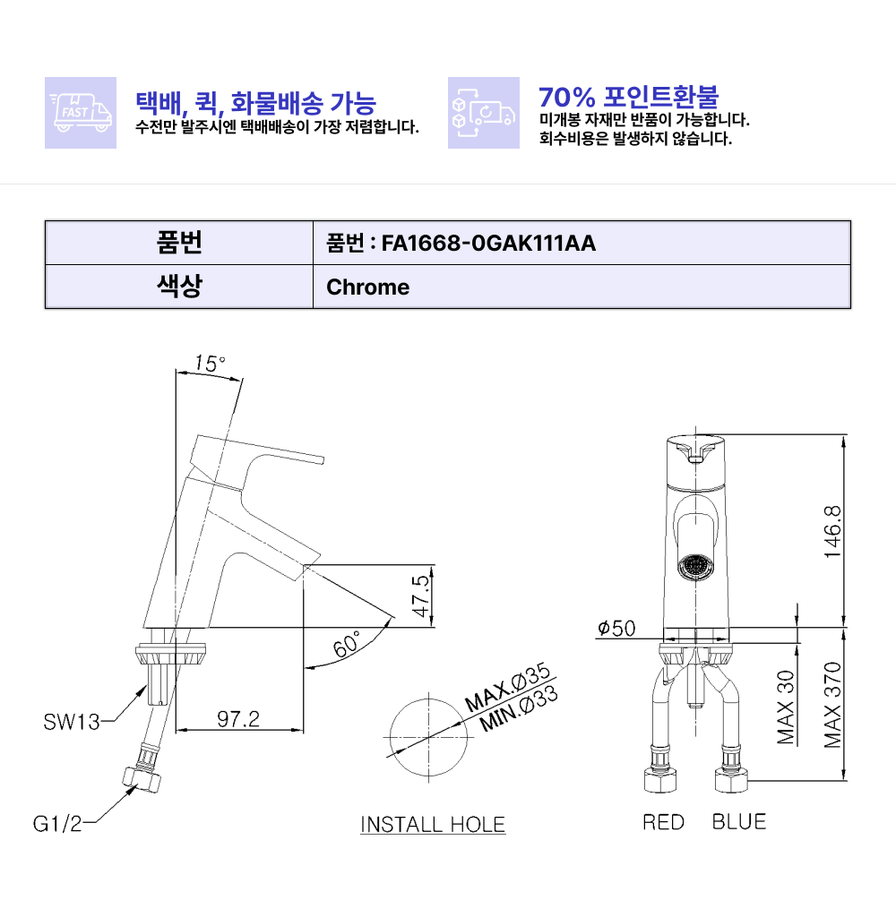 피노 1H세면수전