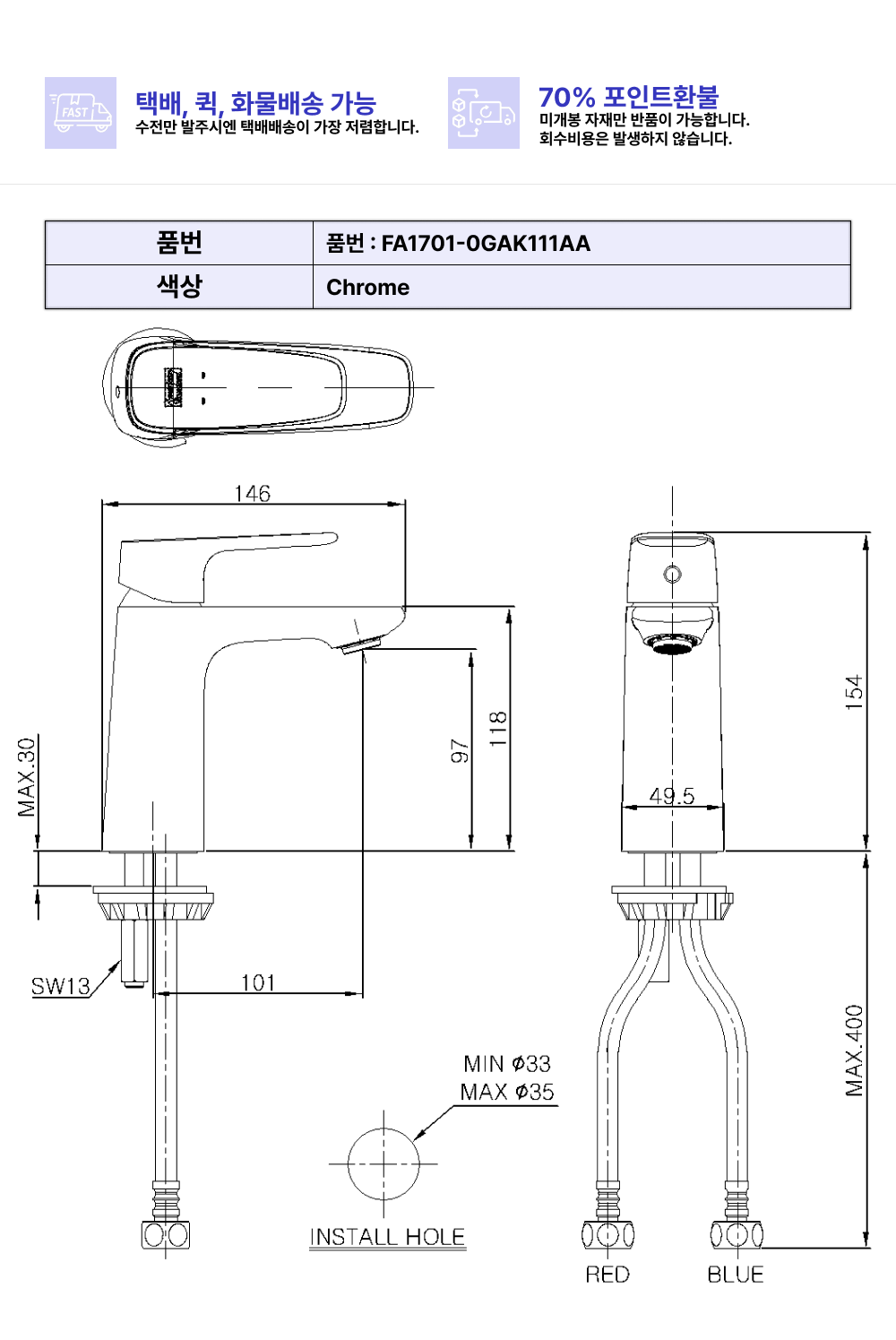 아메리칸스탠다드 브랜드의 세면수전 시그니처 1H세면수전 입니다. 일반 소비자가 기준 83270원에 판매하고 있으며, 사업자 단가는 앱 설치 및 로그인 시 확인 가능합니다.