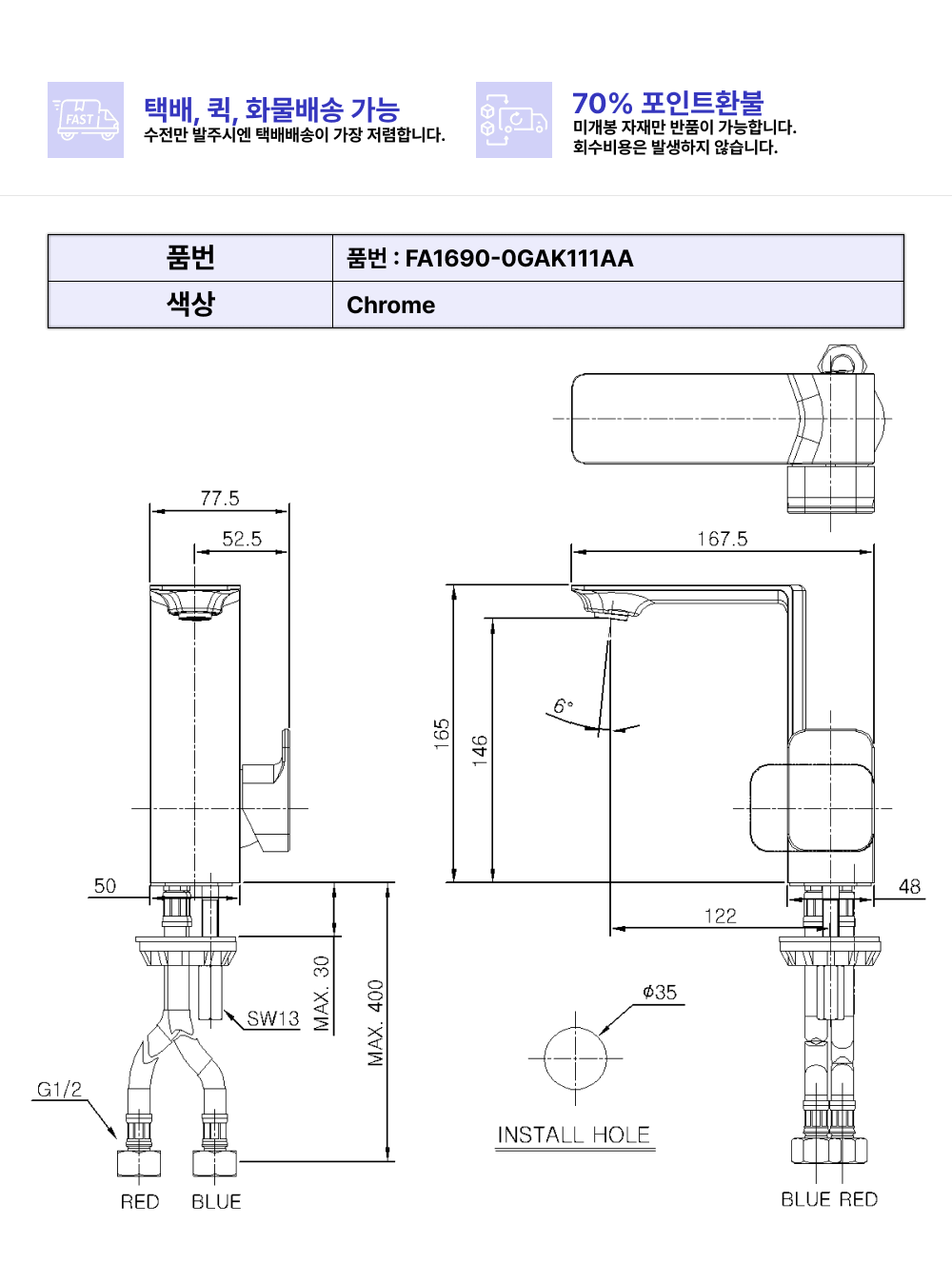 아메리칸스탠다드 브랜드의 세면수전 슬릭 1H세면수전 입니다. 일반 소비자가 기준 258500원에 판매하고 있으며, 사업자 단가는 앱 설치 및 로그인 시 확인 가능합니다.