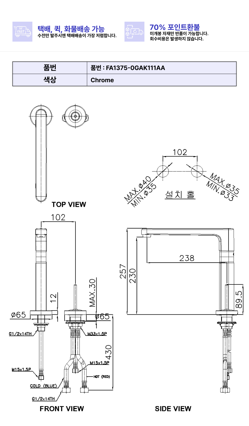 아메리칸스탠다드 브랜드의 세면수전 아이디에스 클리어 2H탑볼세면수전 입니다. 일반 소비자가 기준 308000원에 판매하고 있으며, 사업자 단가는 앱 설치 및 로그인 시 확인 가능합니다.