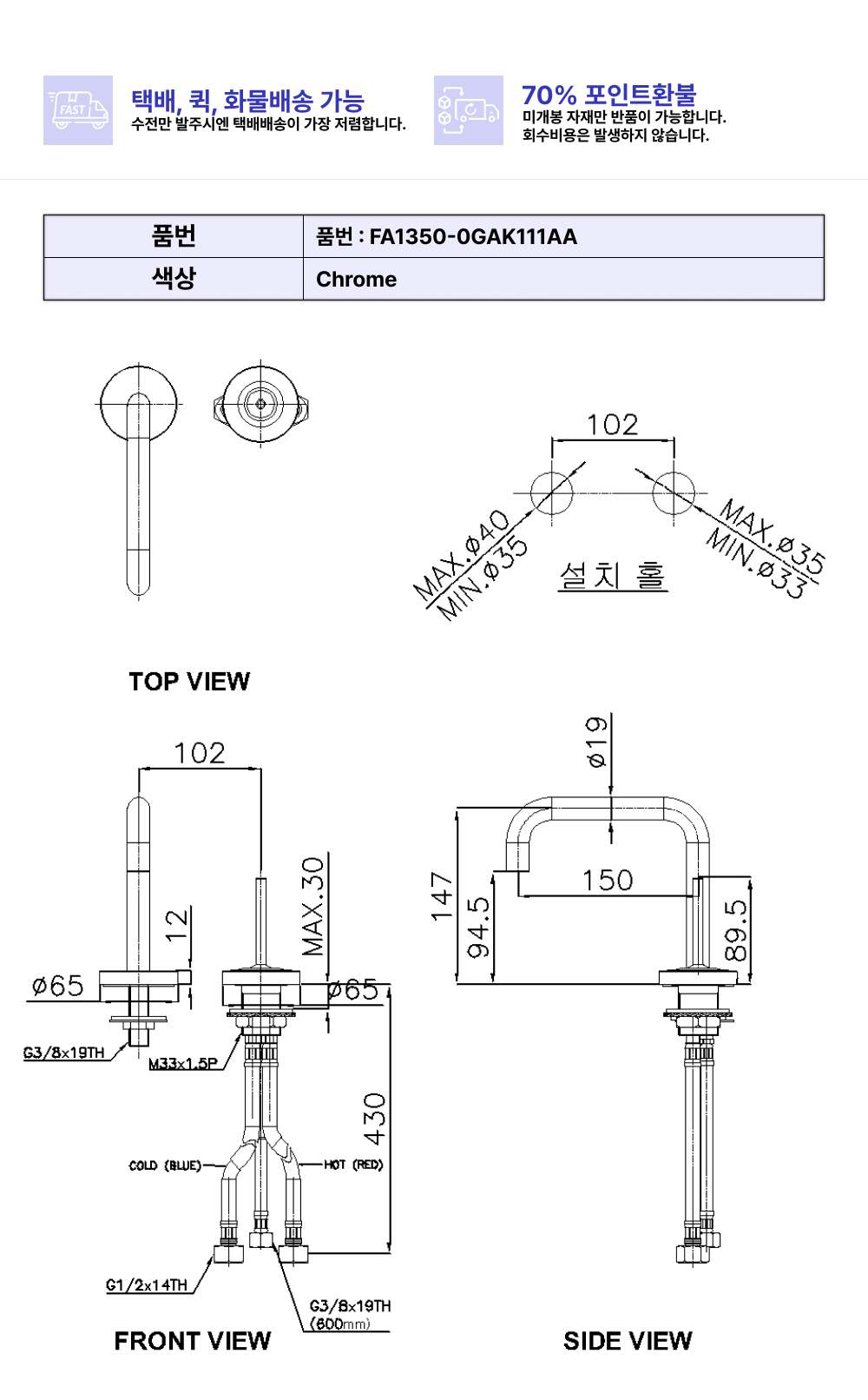 아이디에스 내추럴 2H세면수전