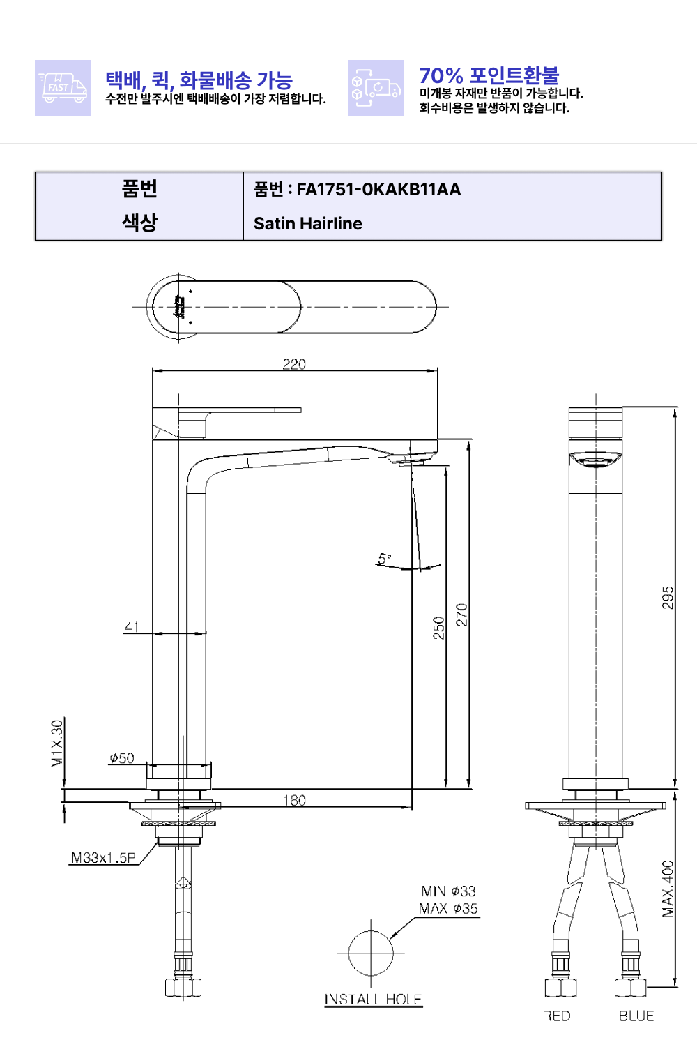 린치핀S 1H탑볼세면수전(사틴헤어라인)
