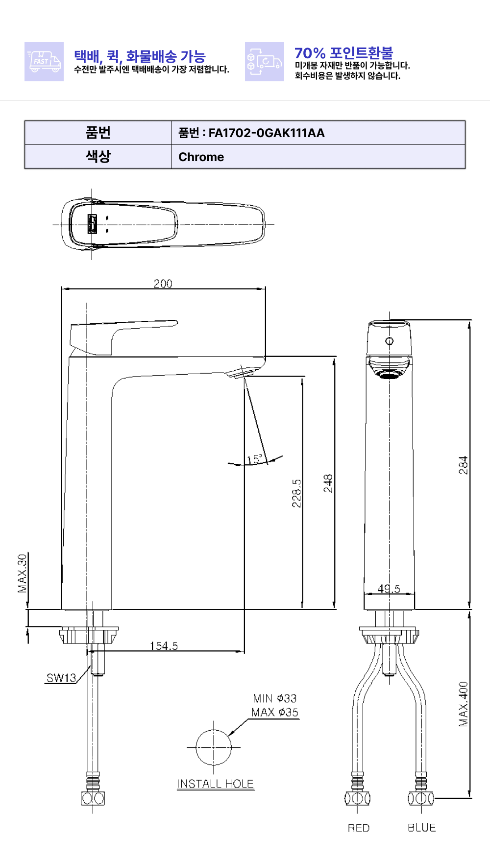 아메리칸스탠다드 브랜드의 세면수전 시그니처 1H탑볼세면수전 입니다. 일반 소비자가 기준 167200원에 판매하고 있으며, 사업자 단가는 앱 설치 및 로그인 시 확인 가능합니다.