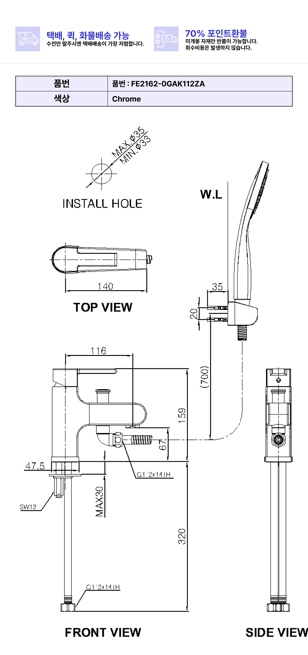 아메리칸스탠다드 브랜드의 세면수전 제이드 1H겸용수전 입니다. 일반 소비자가 기준 169400원에 판매하고 있으며, 사업자 단가는 앱 설치 및 로그인 시 확인 가능합니다.
