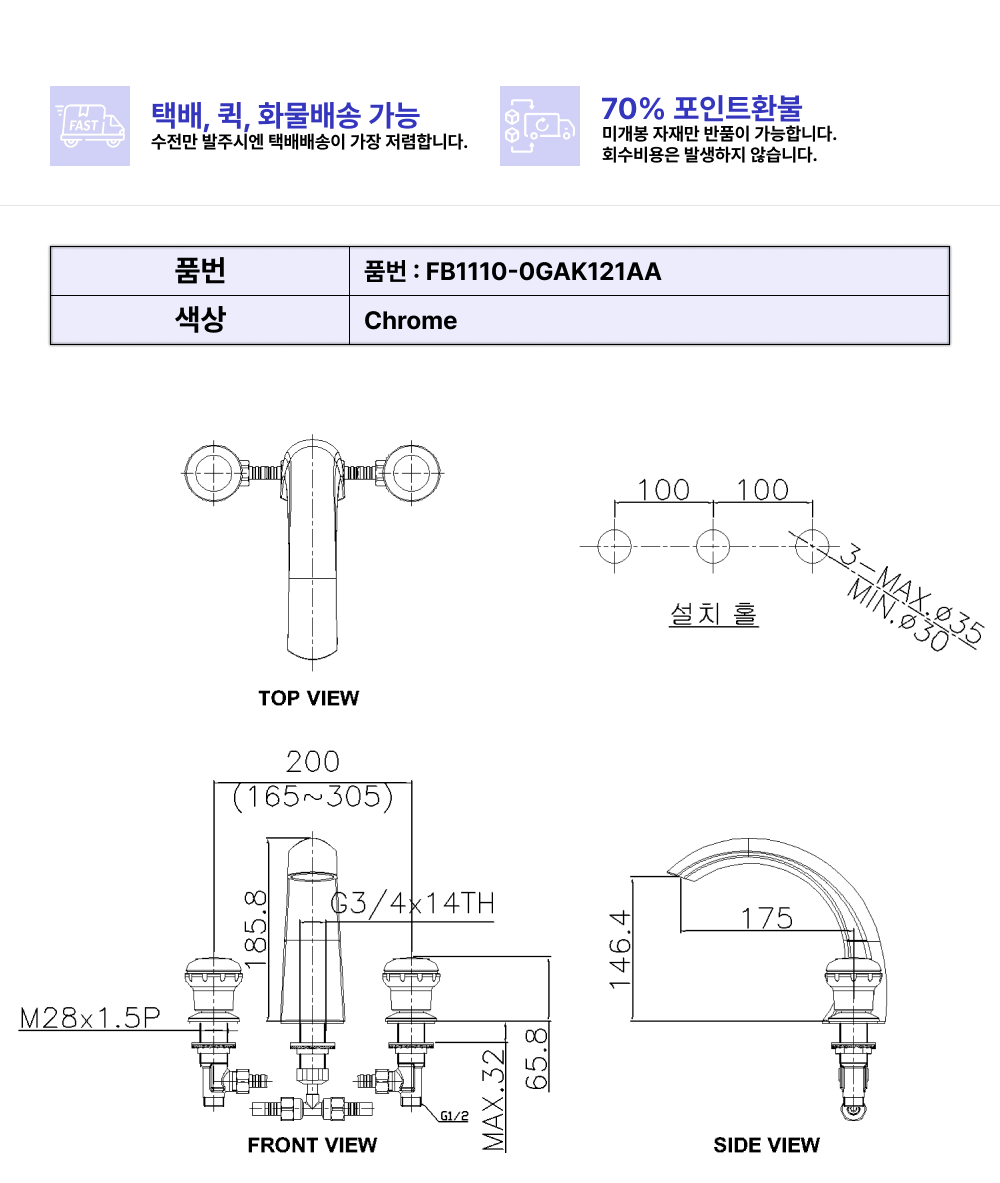아메리칸스탠다드 브랜드의 샤워/욕조수전 파비안 3H욕조수전 입니다. 일반 소비자가 기준 221100원에 판매하고 있으며, 사업자 단가는 앱 설치 및 로그인 시 확인 가능합니다.