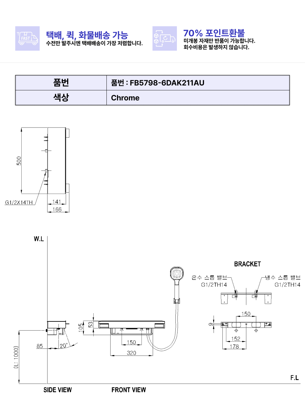 아메리칸스탠다드 브랜드의 샤워/욕조수전 코드 2WAY샤워욕조수전 입니다. 일반 소비자가 기준 181500원에 판매하고 있으며, 사업자 단가는 앱 설치 및 로그인 시 확인 가능합니다.