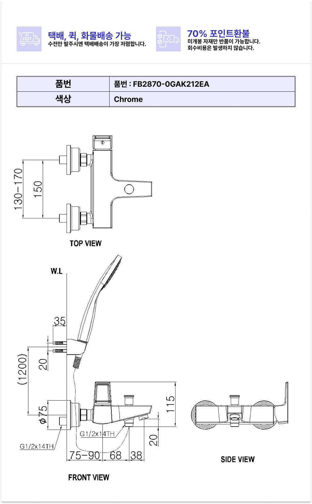 아메리칸스탠다드 브랜드의 샤워/욕조수전 컨셉큐브 샤워욕조수전 입니다. 일반 소비자가 기준 154000원에 판매하고 있으며, 사업자 단가는 앱 설치 및 로그인 시 확인 가능합니다.