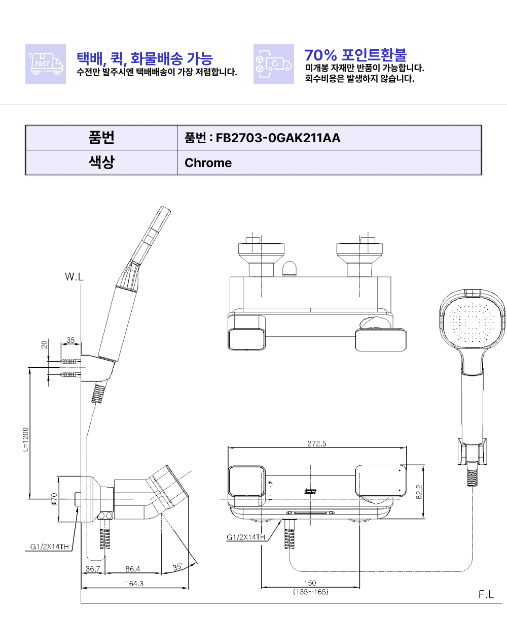 아메리칸스탠다드 브랜드의 샤워/욕조수전 코너스톤 샤워욕조수전 입니다. 일반 소비자가 기준 136800원에 판매하고 있으며, 사업자 단가는 앱 설치 및 로그인 시 확인 가능합니다.