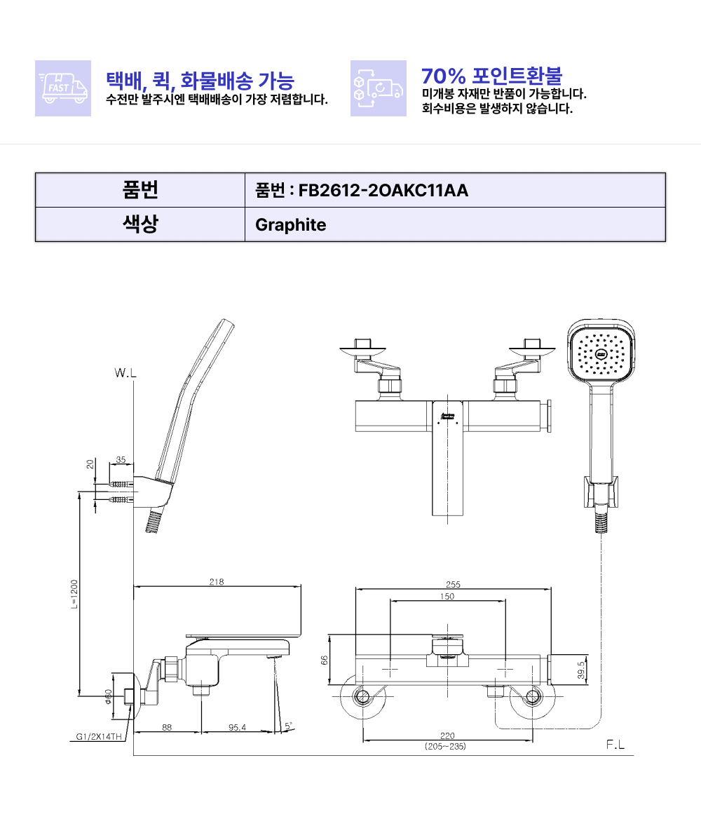 아메리칸스탠다드 브랜드의 샤워/욕조수전 호라이즌 샤워욕조수전(그라파이트) 입니다. 일반 소비자가 기준 280500원에 판매하고 있으며, 사업자 단가는 앱 설치 및 로그인 시 확인 가능합니다.