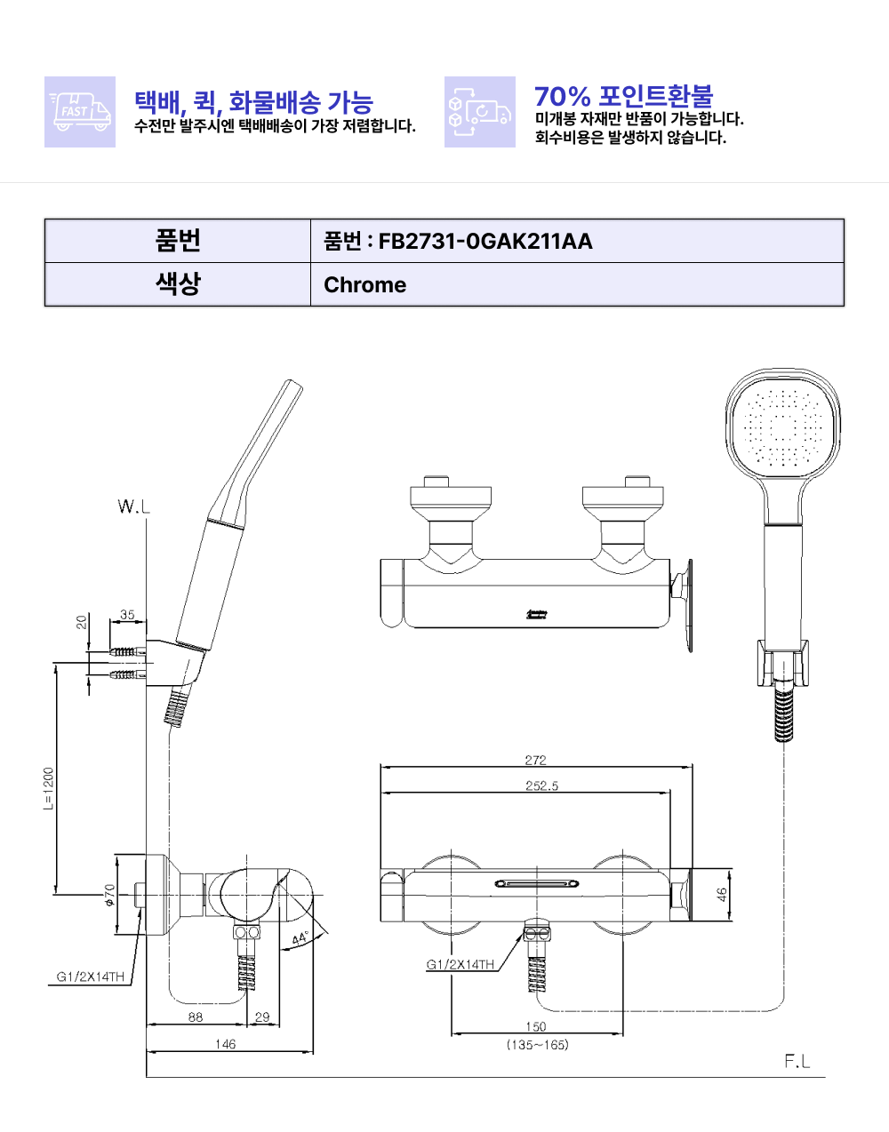 아메리칸스탠다드 브랜드의 샤워/욕조수전 레이크R 샤워욕조수전 입니다. 일반 소비자가 기준 214500원에 판매하고 있으며, 사업자 단가는 앱 설치 및 로그인 시 확인 가능합니다.