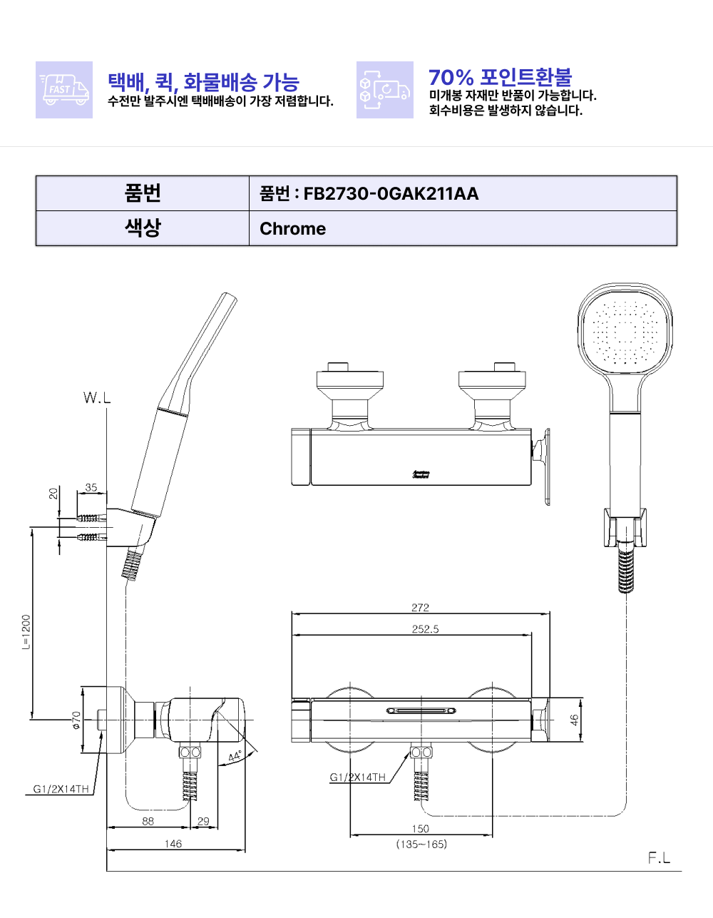 아메리칸스탠다드 브랜드의 샤워/욕조수전 레이크S 샤워욕조수전 입니다. 일반 소비자가 기준 220000원에 판매하고 있으며, 사업자 단가는 앱 설치 및 로그인 시 확인 가능합니다.