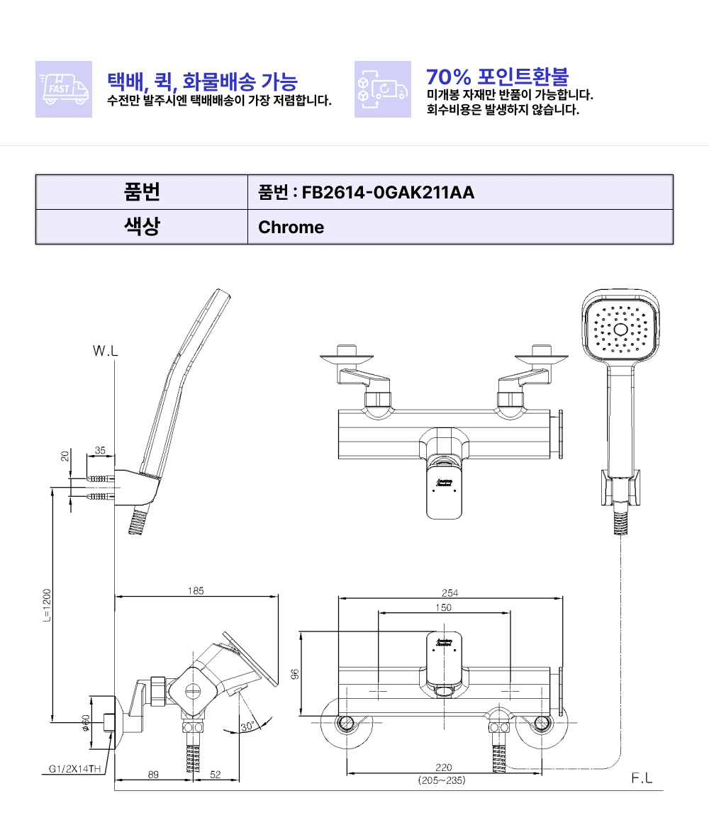 아메리칸스탠다드 브랜드의 샤워/욕조수전 리비어 샤워욕조수전 입니다. 일반 소비자가 기준 161700원에 판매하고 있으며, 사업자 단가는 앱 설치 및 로그인 시 확인 가능합니다.