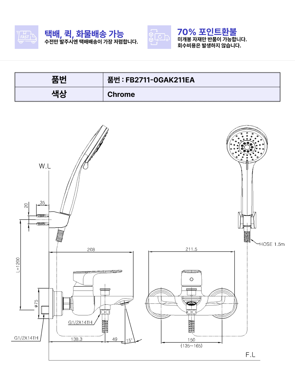 아메리칸스탠다드 브랜드의 샤워/욕조수전 시그니처 샤워욕조수전 입니다. 일반 소비자가 기준 154000원에 판매하고 있으며, 사업자 단가는 앱 설치 및 로그인 시 확인 가능합니다.