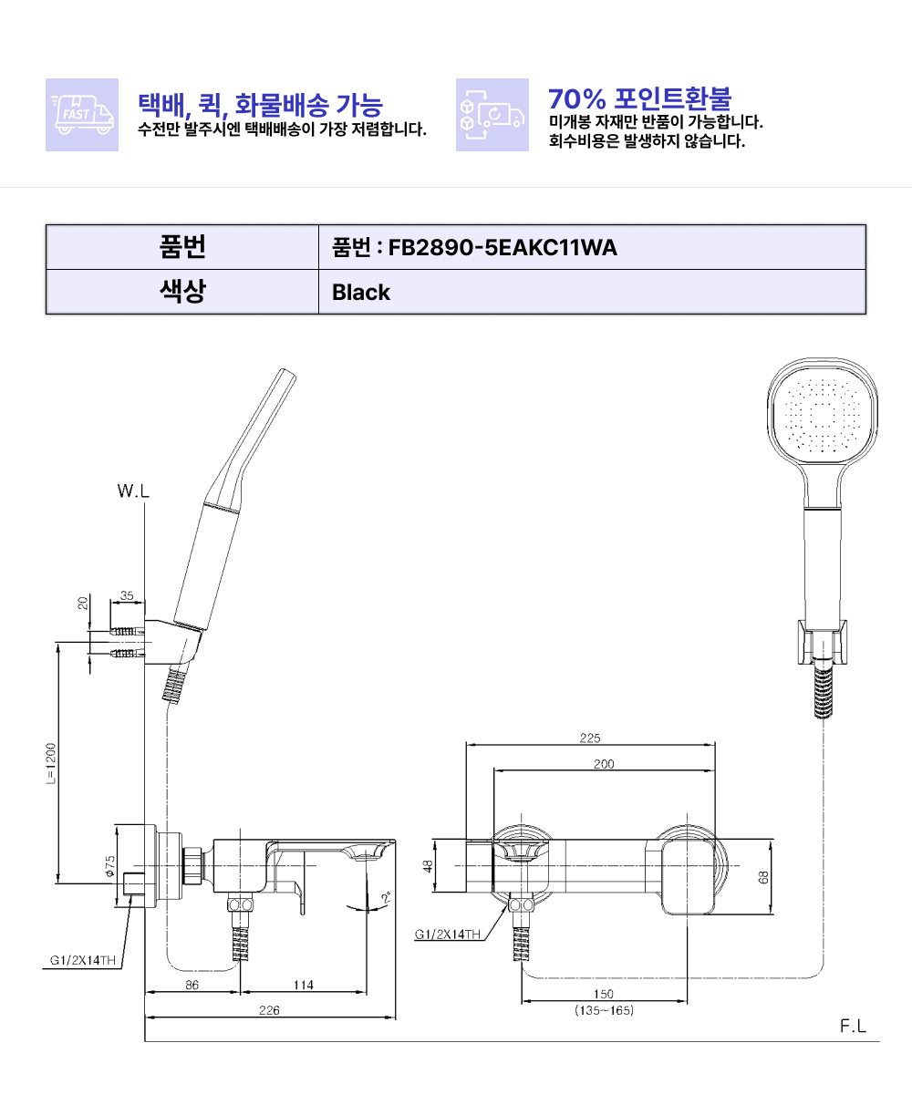슬릭 샤워욕조수전(블랙)