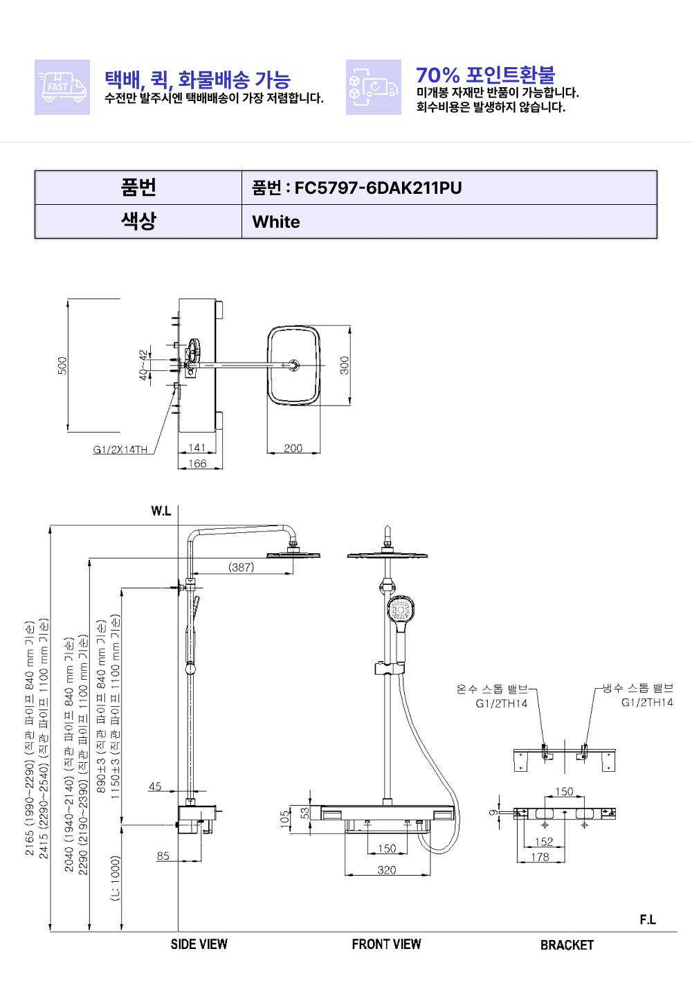 코드 2WAY레인샤워(선반형)