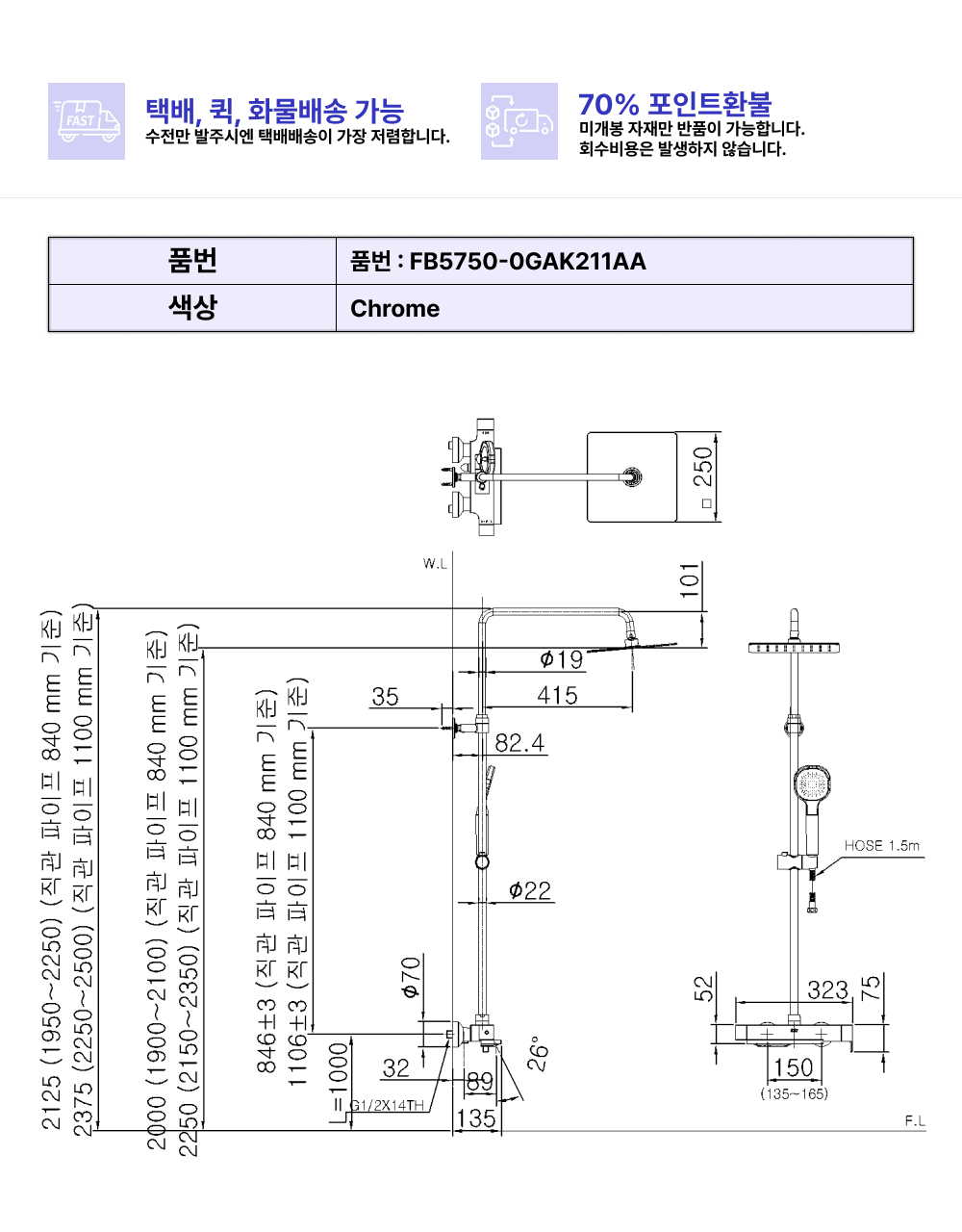 린치핀G 3WAY레인샤워