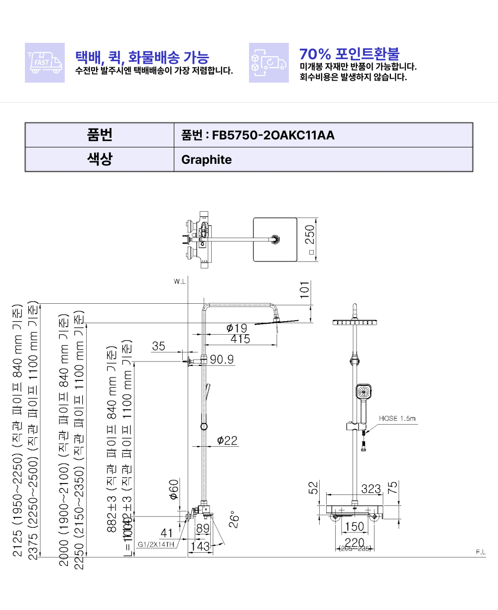 린치핀G 3WAY레인샤워(그라파이트)