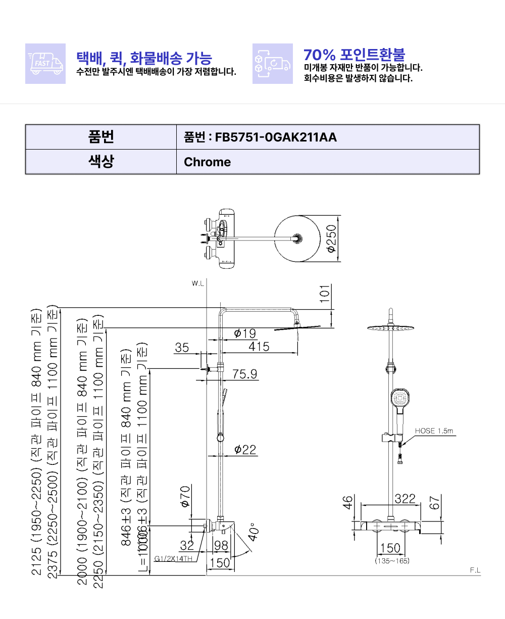 아메리칸스탠다드 브랜드의 샤워/욕조수전 린치핀S 3WAY레인샤워 입니다. 일반 소비자가 기준 361900원에 판매하고 있으며, 사업자 단가는 앱 설치 및 로그인 시 확인 가능합니다.