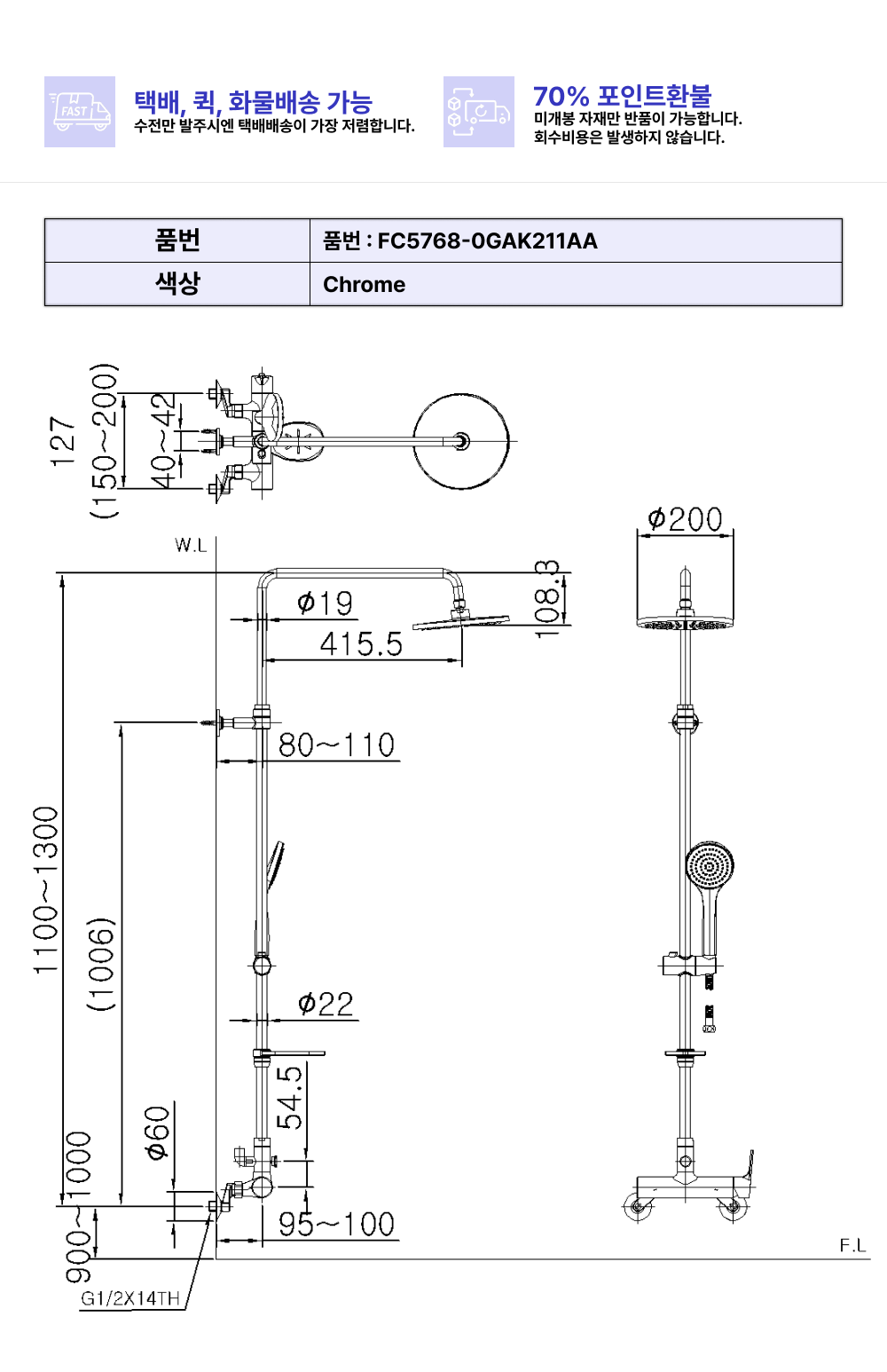 아메리칸스탠다드 브랜드의 샤워/욕조수전 피노 2WAY레인샤워 입니다. 일반 소비자가 기준 224400원에 판매하고 있으며, 사업자 단가는 앱 설치 및 로그인 시 확인 가능합니다.