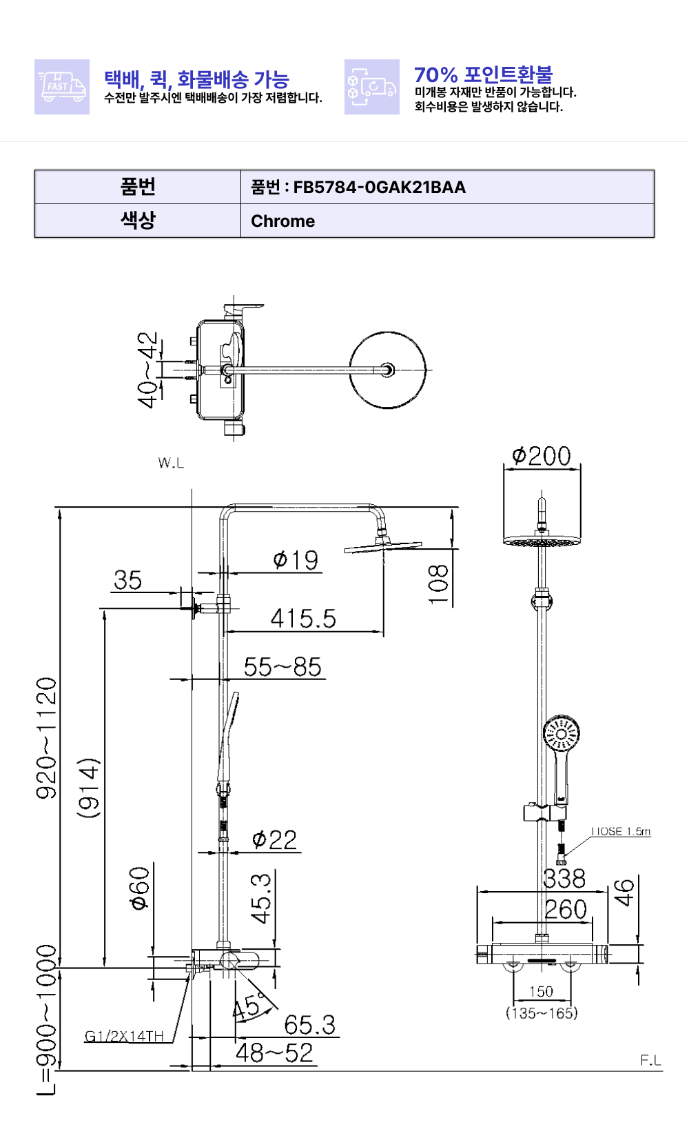 아메리칸스탠다드 브랜드의 샤워/욕조수전 플랫 라운드 3WAY레인샤워(블랙) 입니다. 일반 소비자가 기준 311300원에 판매하고 있으며, 사업자 단가는 앱 설치 및 로그인 시 확인 가능합니다.