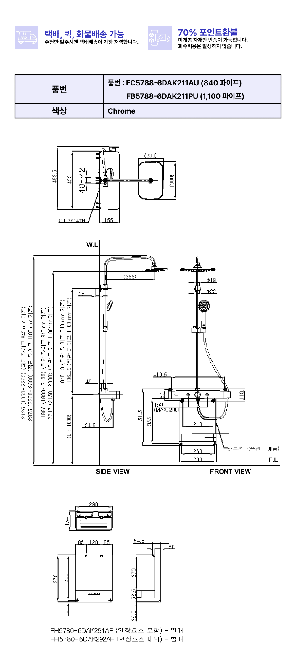심플 2WAY레인샤워(선반형)