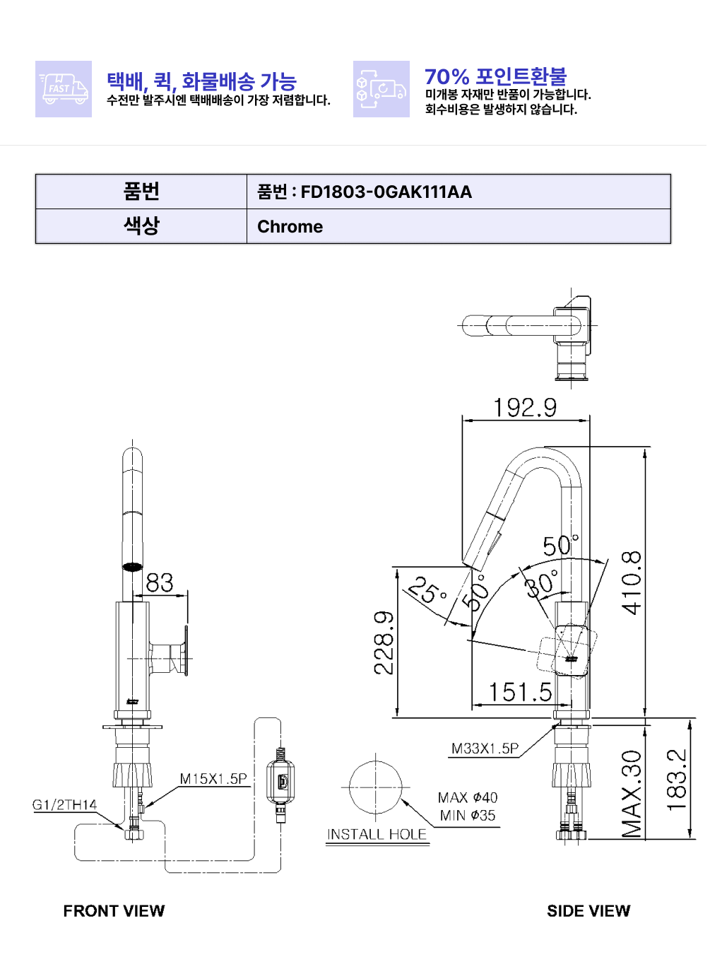 코너스톤 1H주방수전