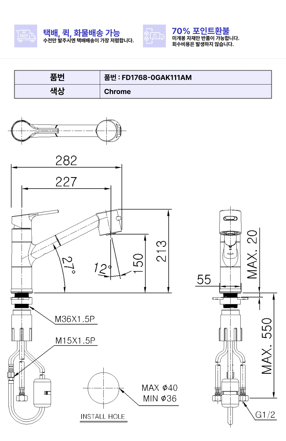 피노 1H주방수전