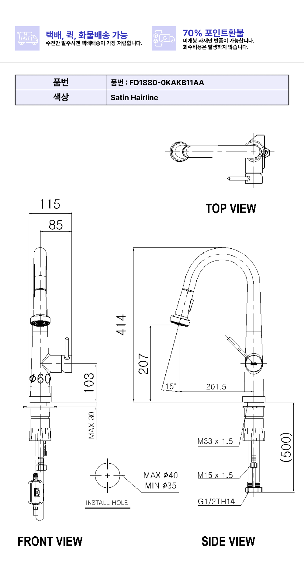웨이브 1H주방수전(사틴헤어라인)