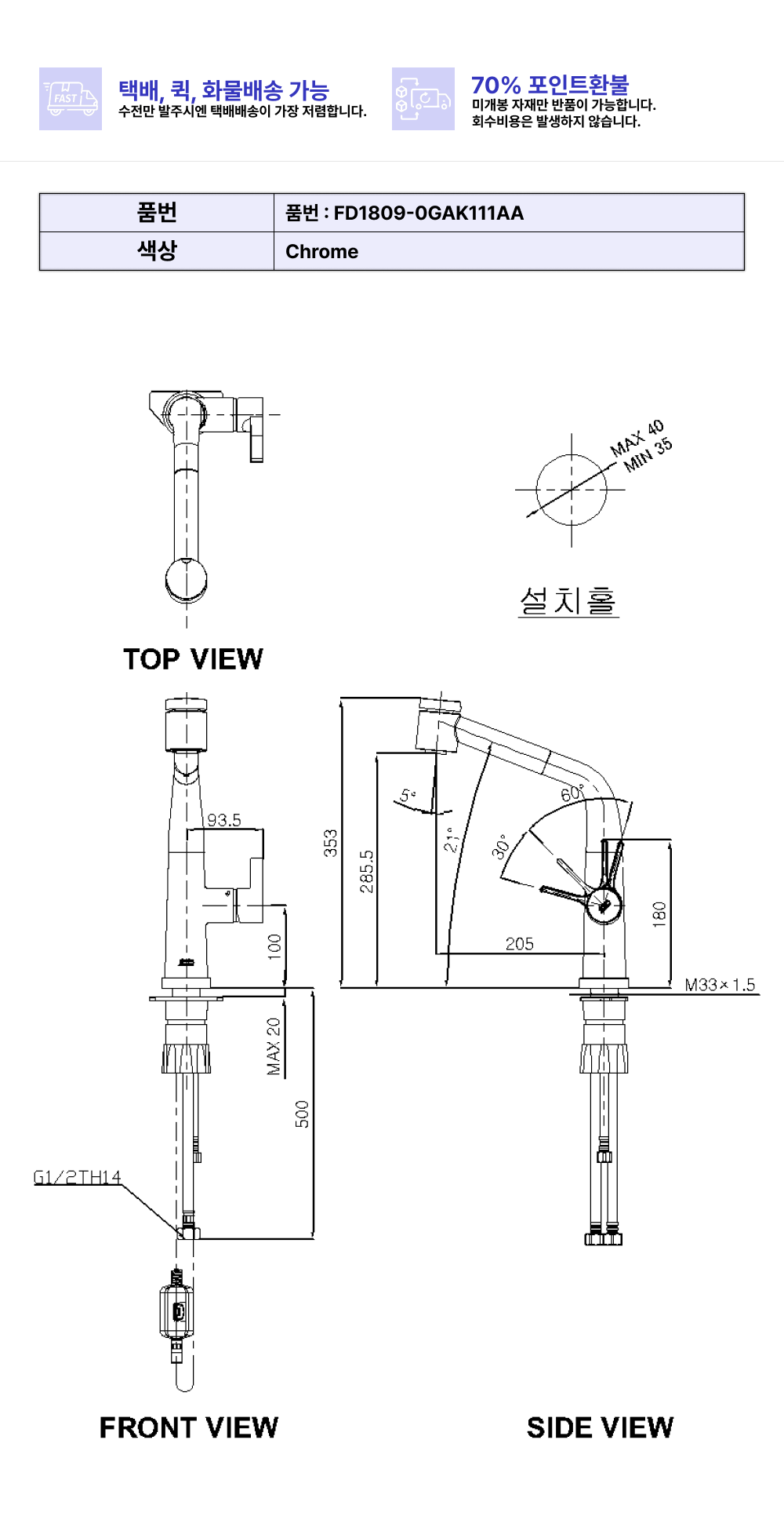 제스티 1H주방수전
