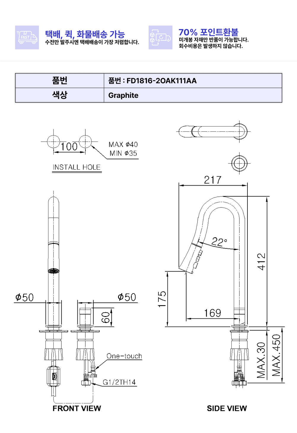 유타B 2H주방수전(그라파이트)